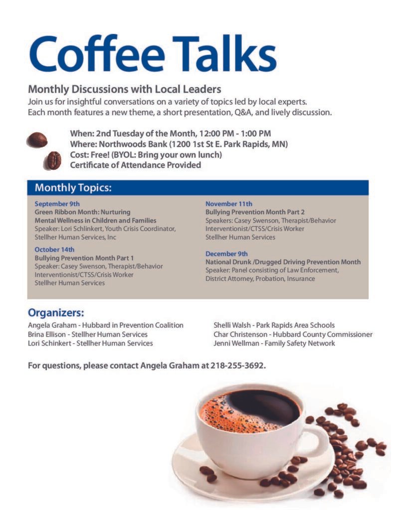 Hubbard in Prevention (HIP) Coalition is currently funded by a Drug Free Communities Grant to help reduce underage alcohol, marijuana and tobacco among our youth in Hubbard County, Minnesota. HIP Coalition is working on strategies to reduced youth substance misuse. Please consider joining us!