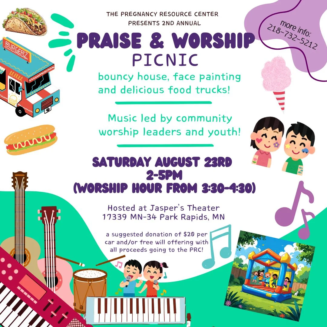 Join the Pregnancy Resource Center for a Praise and Worship Picnic. Music led by community worship leaders and youth! Bouncy House, face painting, and delicious food trucks! A suggested donation of $20 per car and/or free will offering with all proceeds going to the PRC.